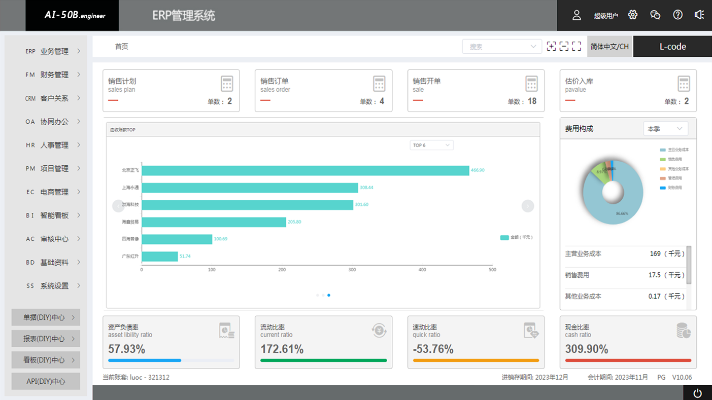天耀AI-50B.engineer《ERP管理系统》是一套完整的企业资源计划信息解决方案。有机的将进销存管理(PSI)、生产管理(PMC)、财务管理( FIN)、协同办公(OA)、智能看板( BI )集成为一体,数据共享、穿透、汇总。