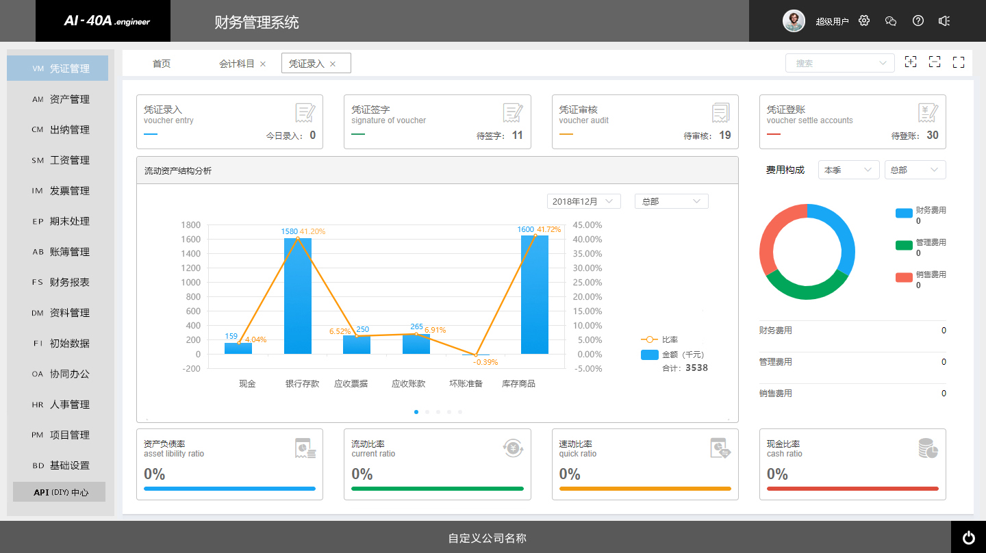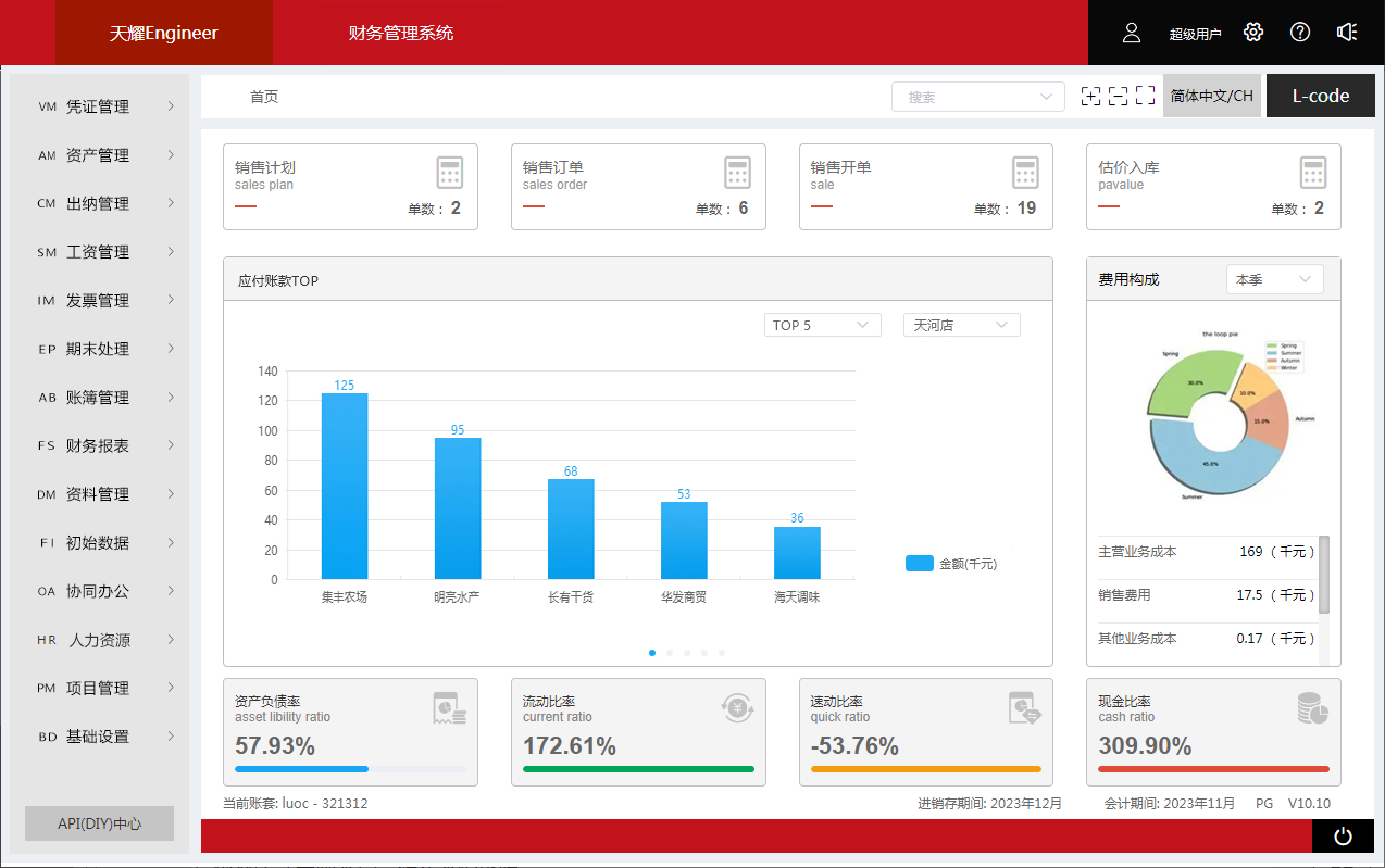 天耀AI-4.engineer 《财务管理系统》 是一套完整的财务管理信息解决方案,有机的将固定资产,工资管理,出納管理,办公管理、总账管理,账务期末集成为一体,数据共享,穿透、汇总。