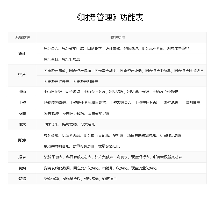 总账管理、工资管理、固定资产、人力资源管理、项目管理