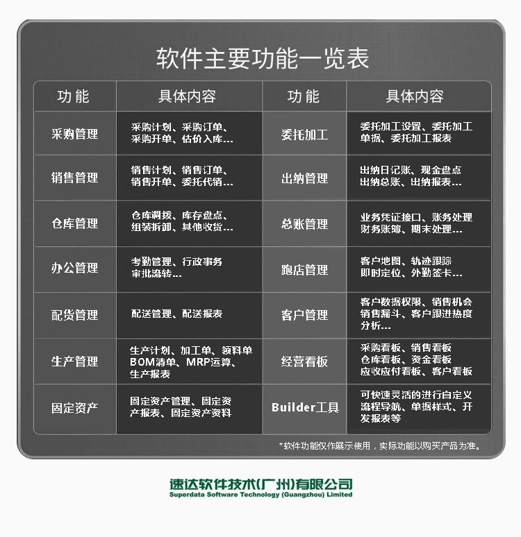 业务管理、财务管理、办公管理、电商管理、智能看板