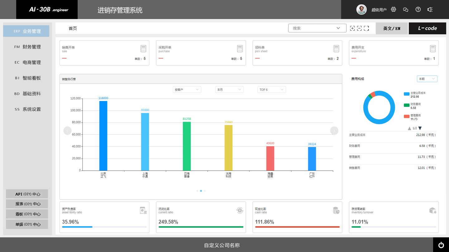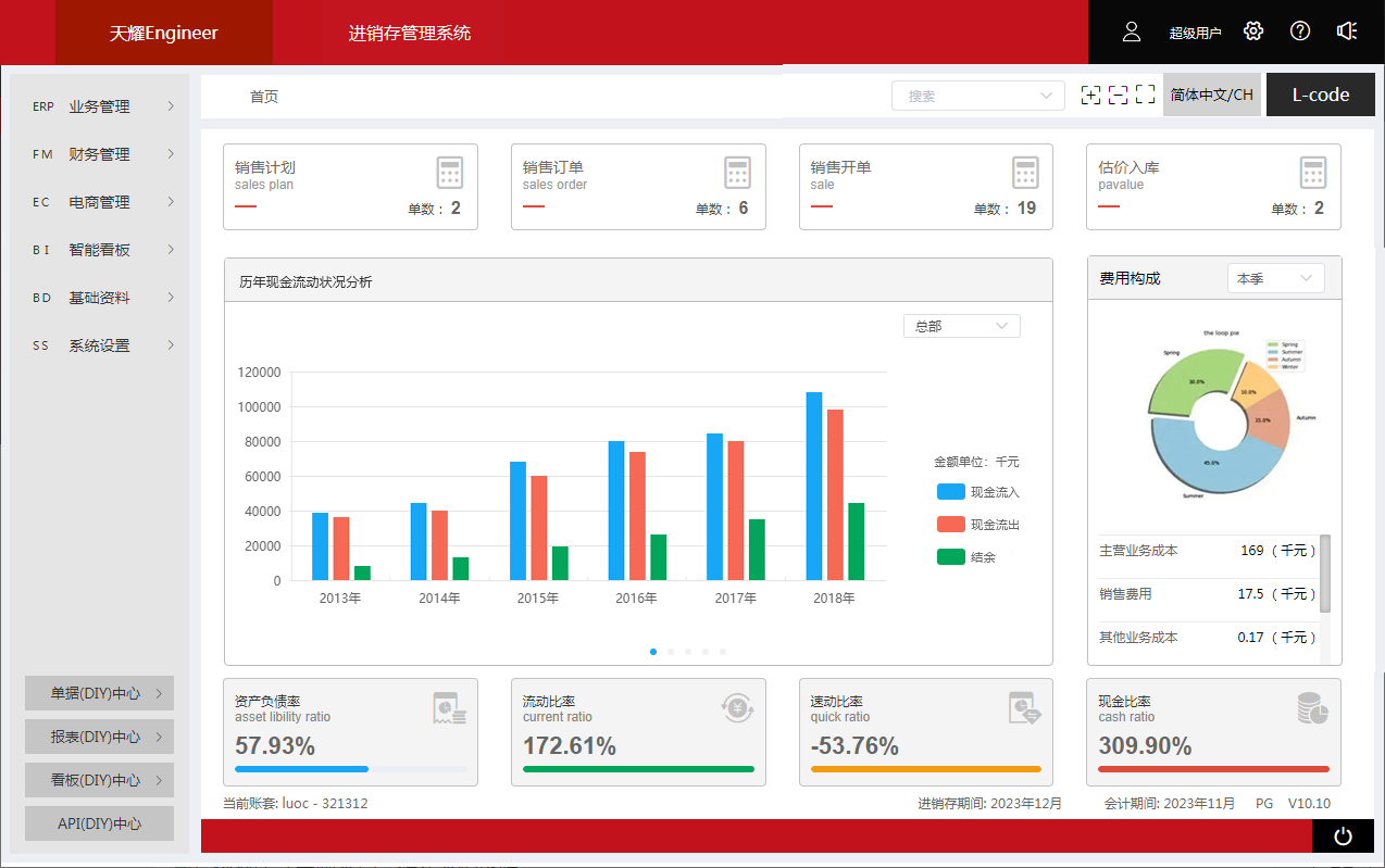 天耀AI-30.engineer XP《企业管理系统》 是一套完整的企业业务 管理解决方案。有机的将进销存管理(PSI)、 财务管理(FIN)、 协同办公(OA)、智能看板(BI)集成为一体,数据共享、穿透、汇总。