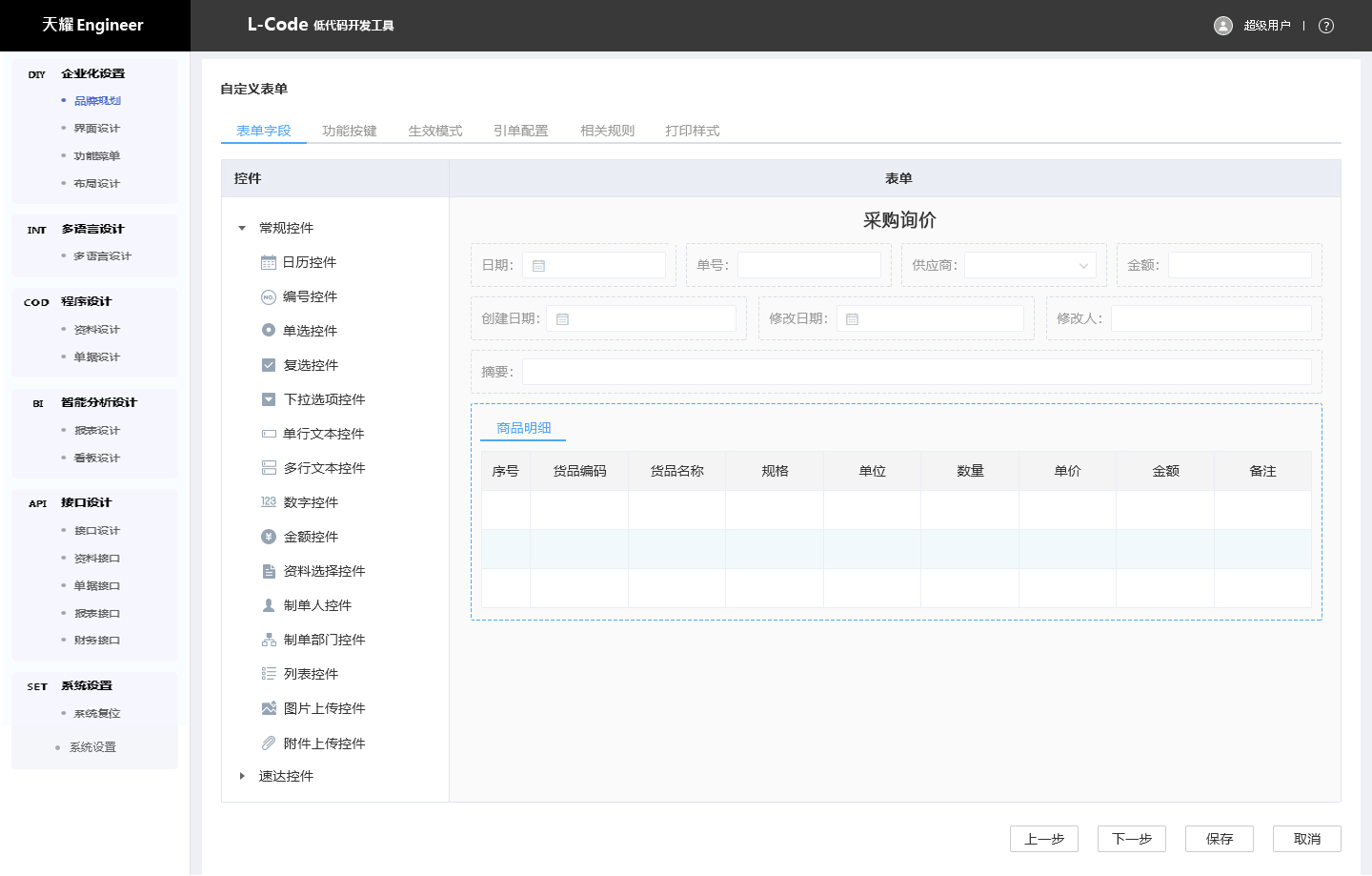 L-Code模块将实现系统低代码开发设计和高级API数据接口编程应用。
