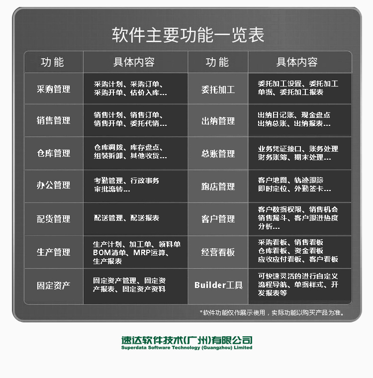 业务管理、财务管理、办公管理、电商管理、智能看板